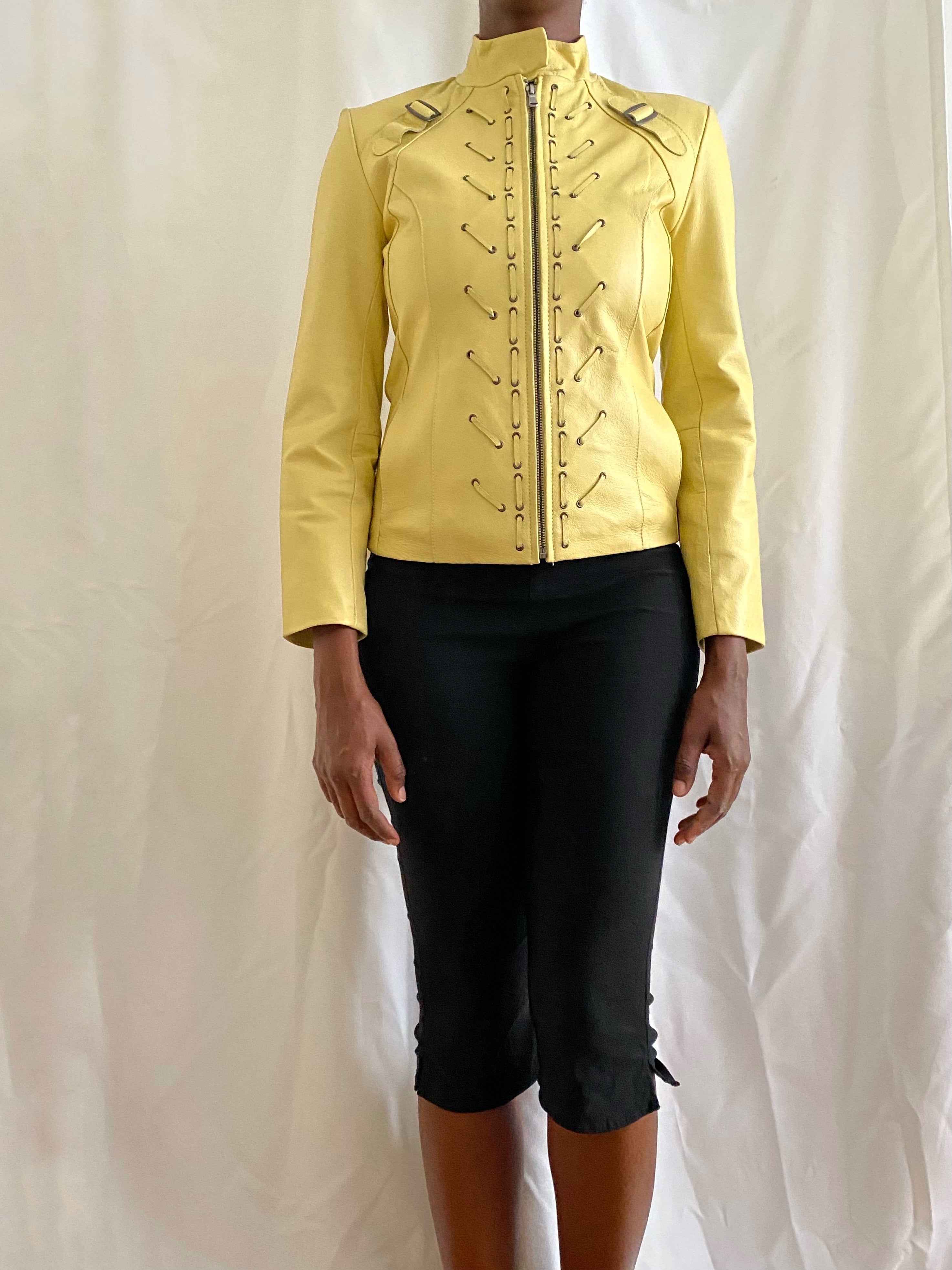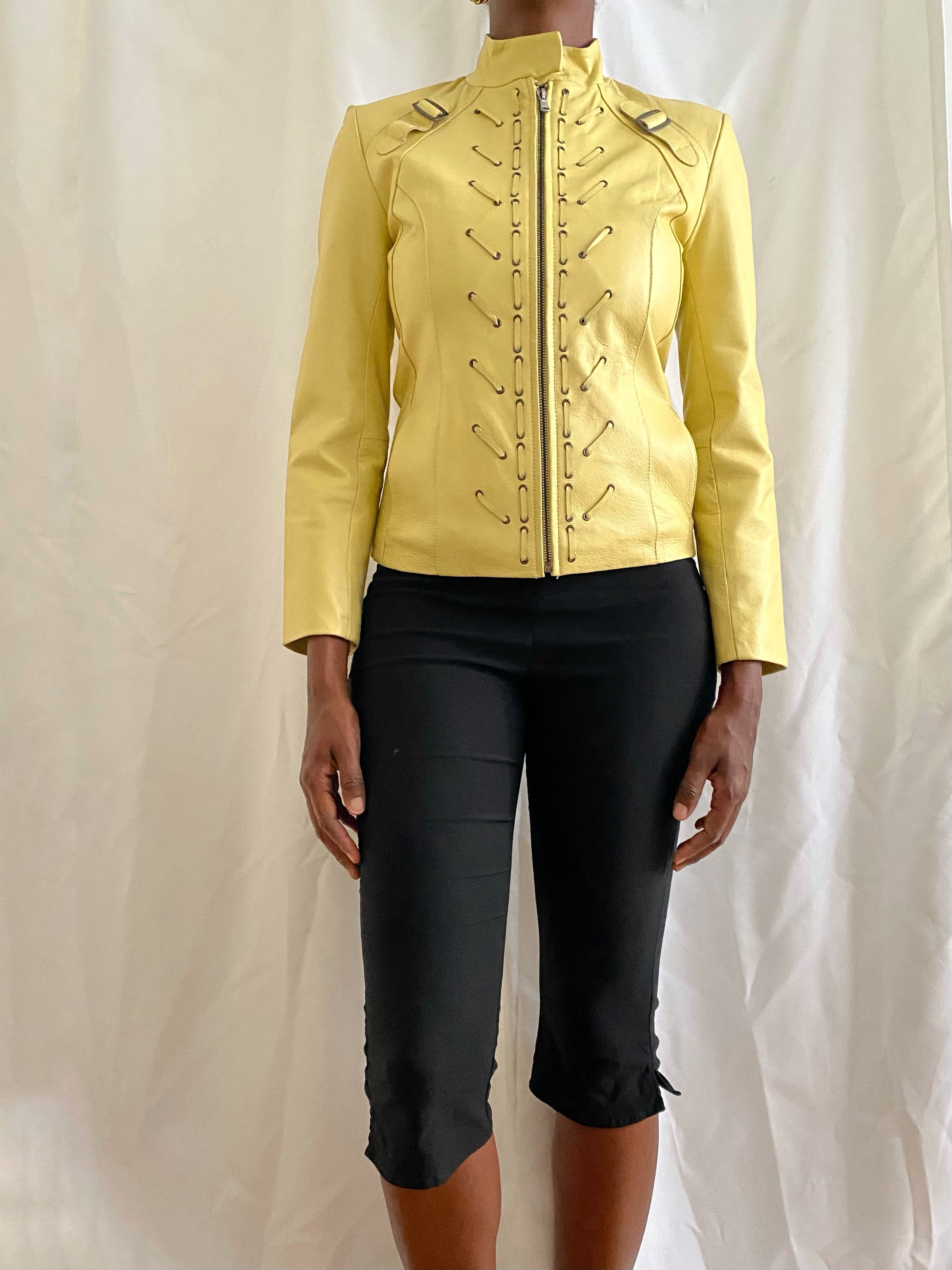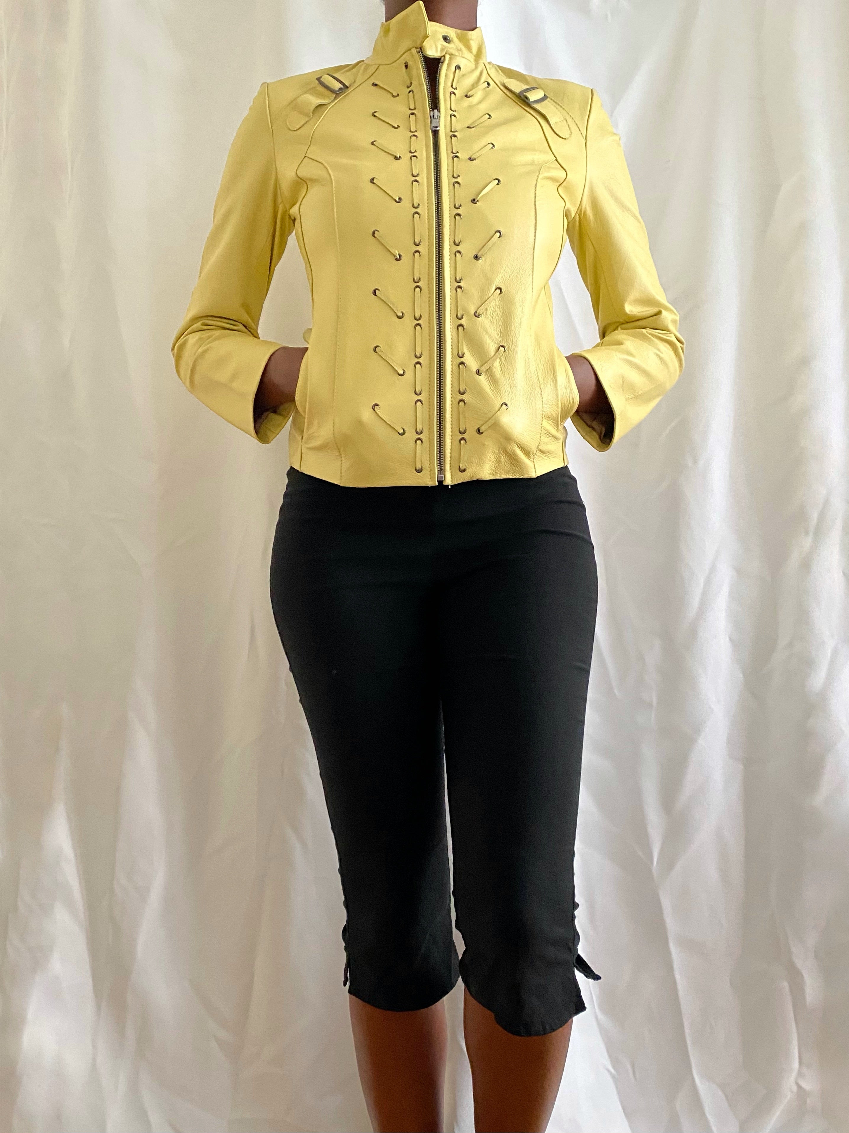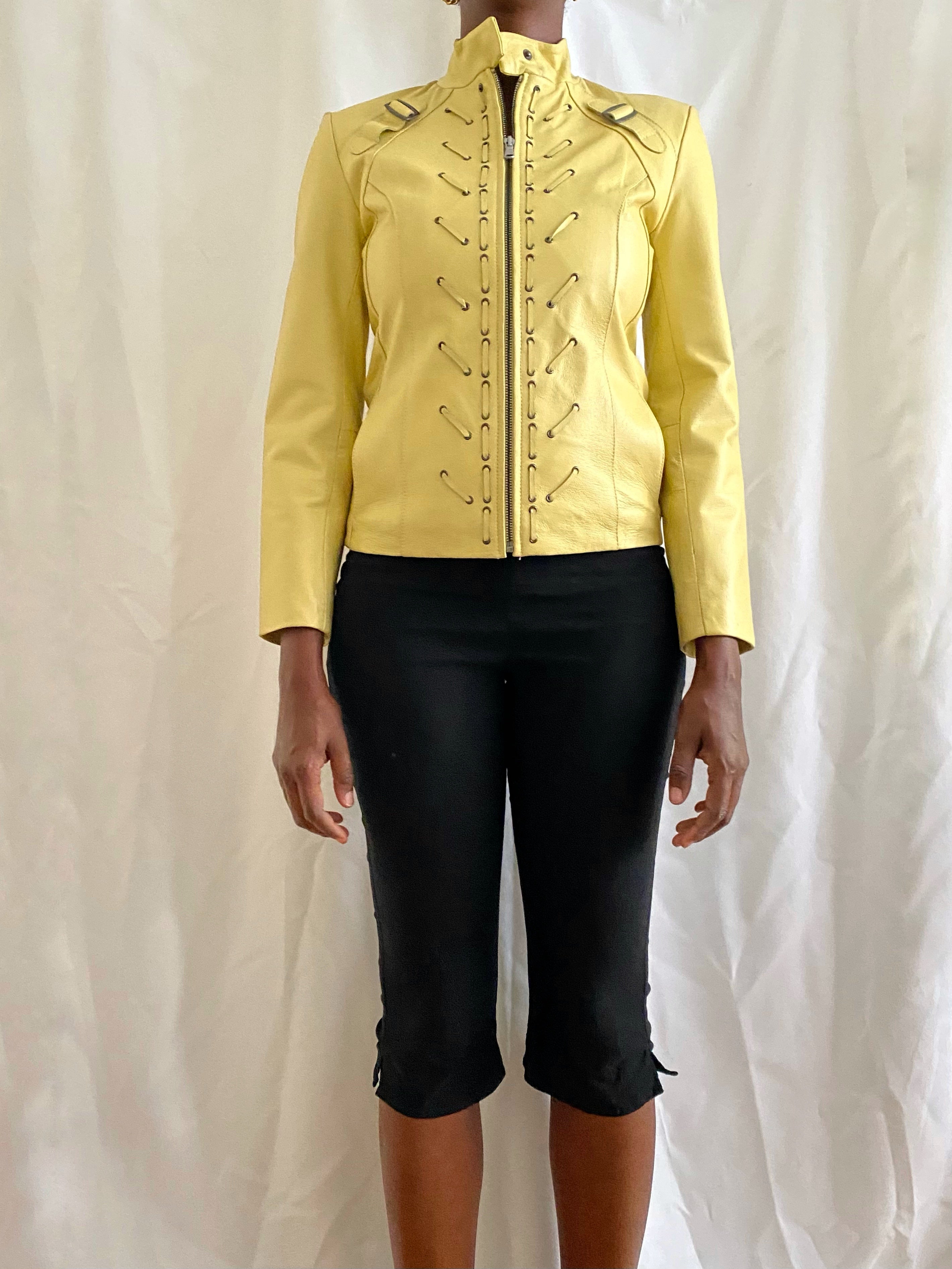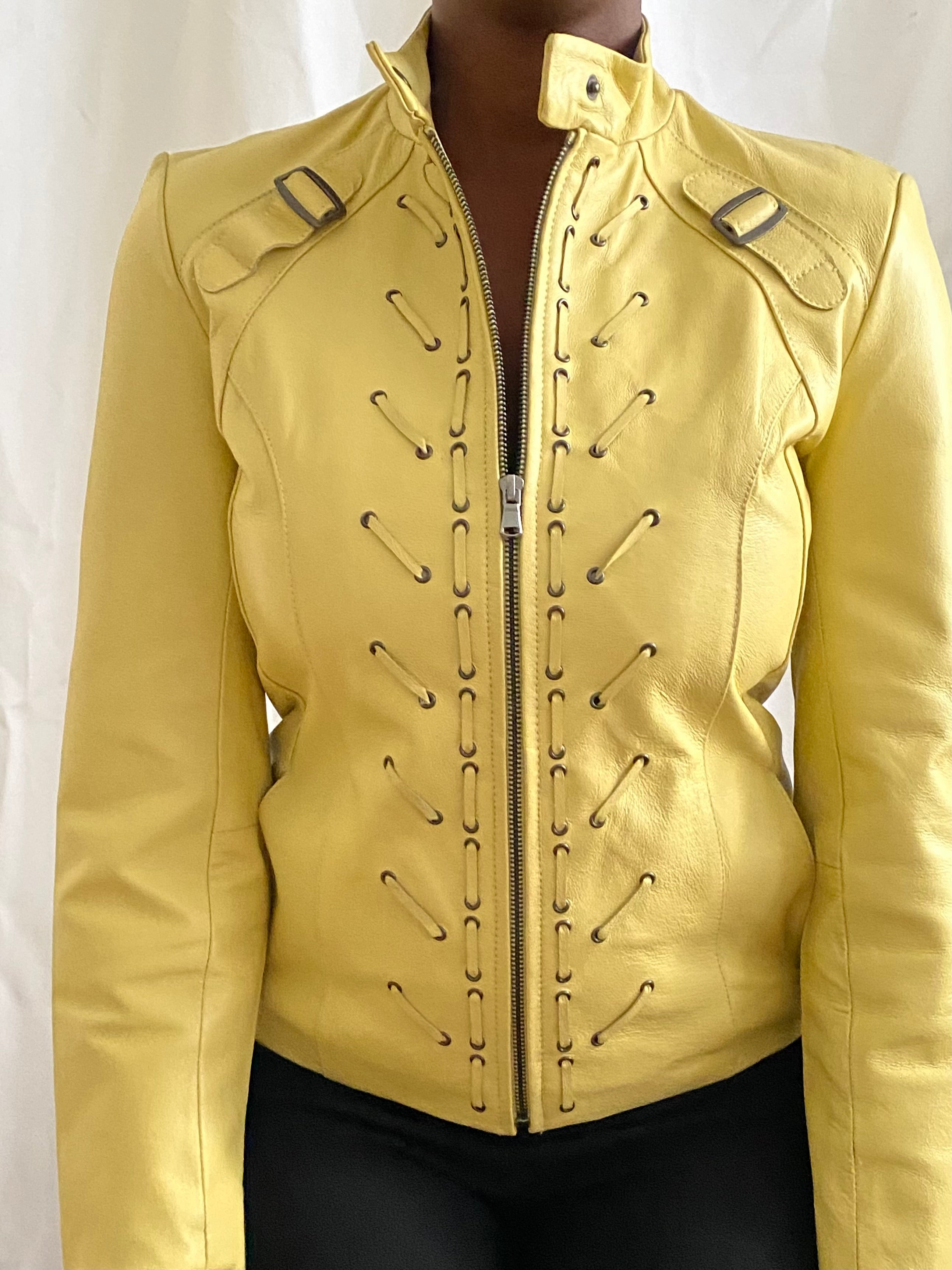 Vintage butter yellow leather coat